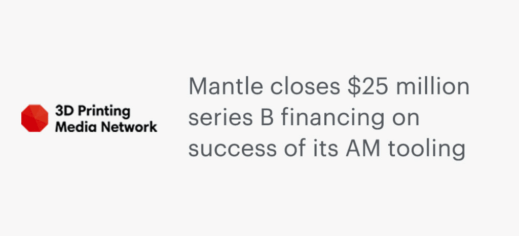 MANTLE CLOSES $25 MILLION SERIES B FINANCING ON SUCCESS OF ITS AM TOOLING