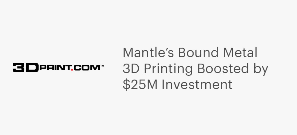 MANTLE’S BOUND METAL 3D PRINTING BOOSTED BY $25M INVESTMENT