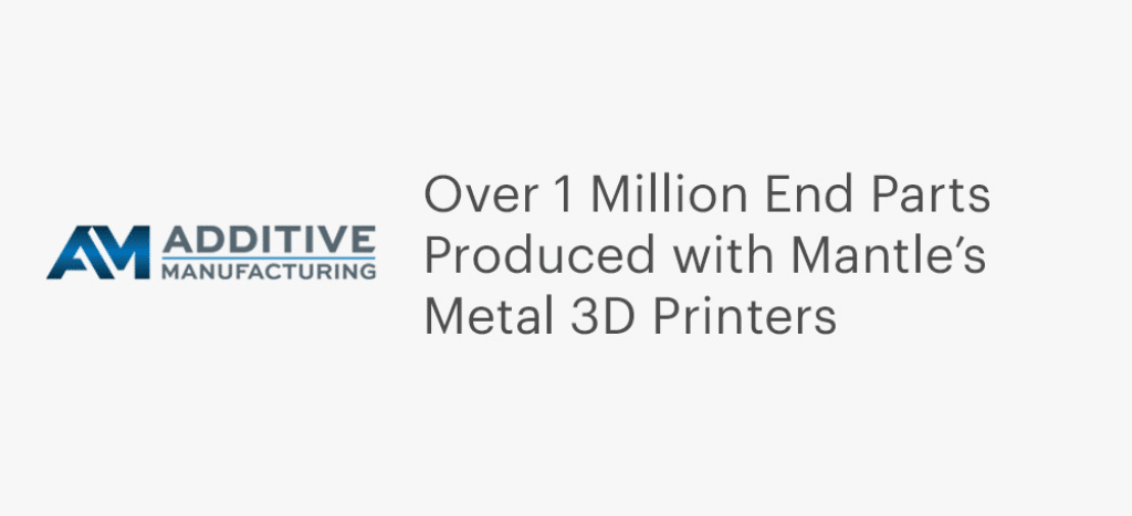OVER 1 MILLION END PARTS PRODUCED WITH MANTLE’S METAL 3D PRINTERS