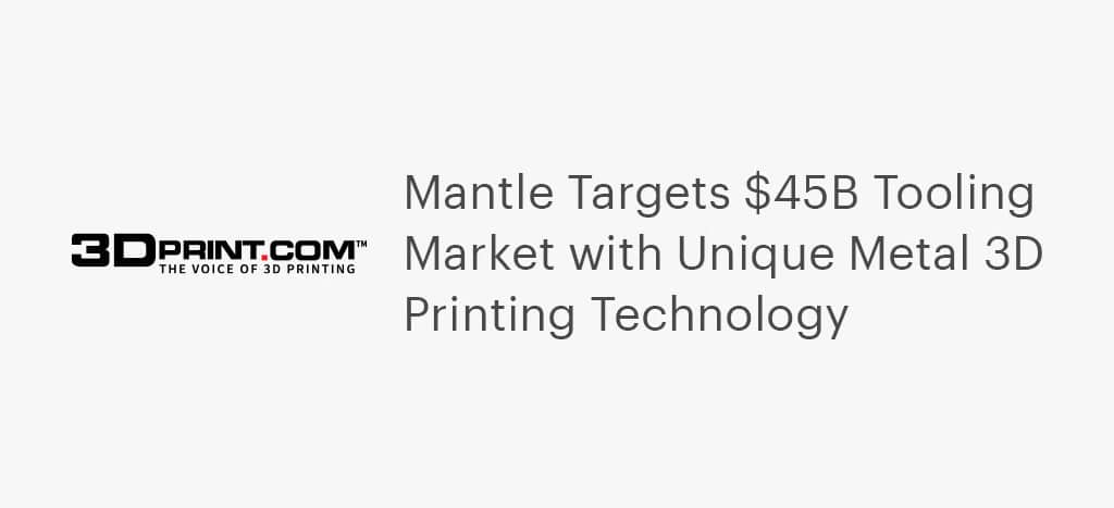 MANTLE TARGETS $45B TOOLING MARKET WITH UNIQUE METAL 3D PRINTING TECHNOLOGY