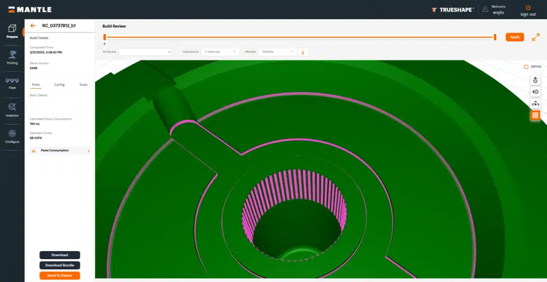Mantle’s TrueShape technology combines the 3D printing of their flowable metal tool steel pastes with precision CNC machining and sintering to produce precision tooling at the push of a button.
