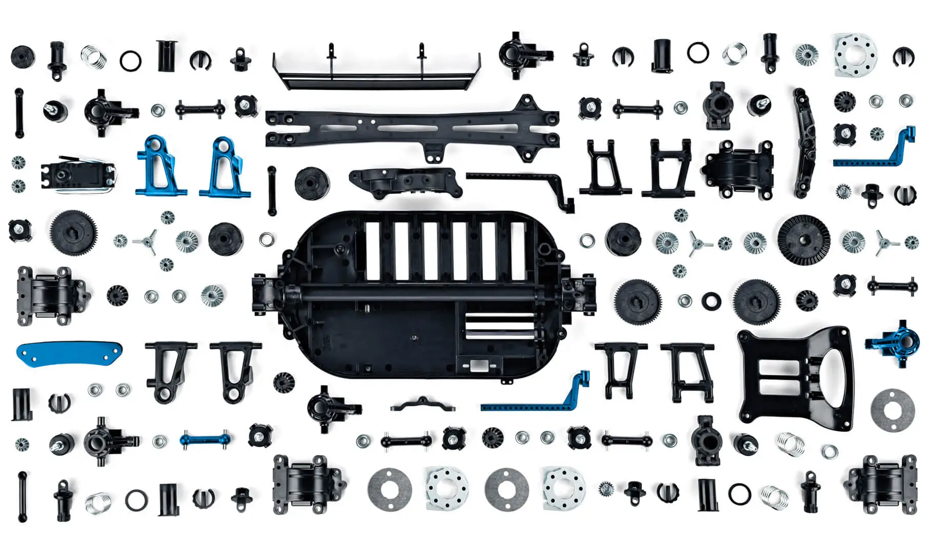 These plastic and metal parts are created from molds and dies.